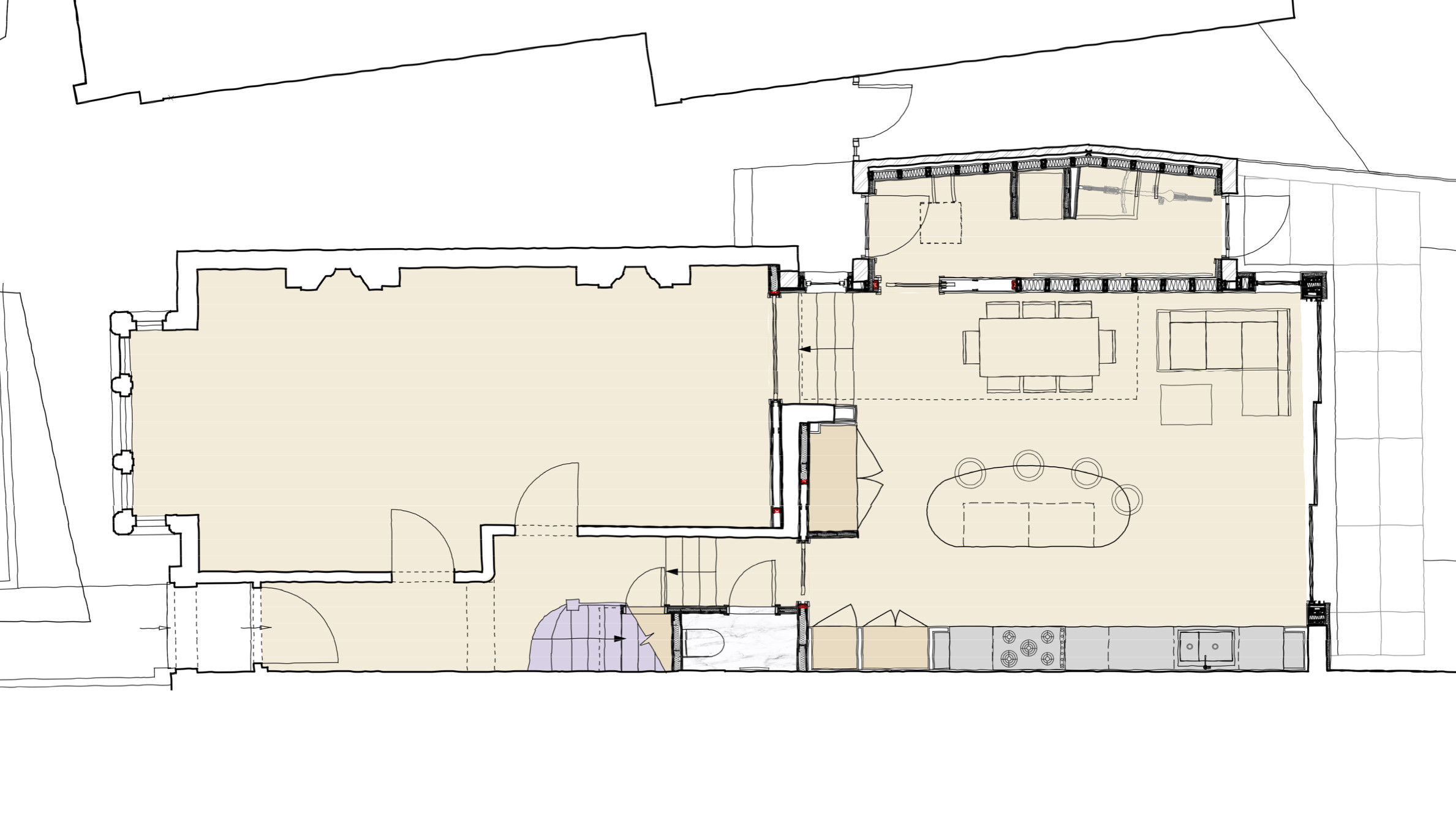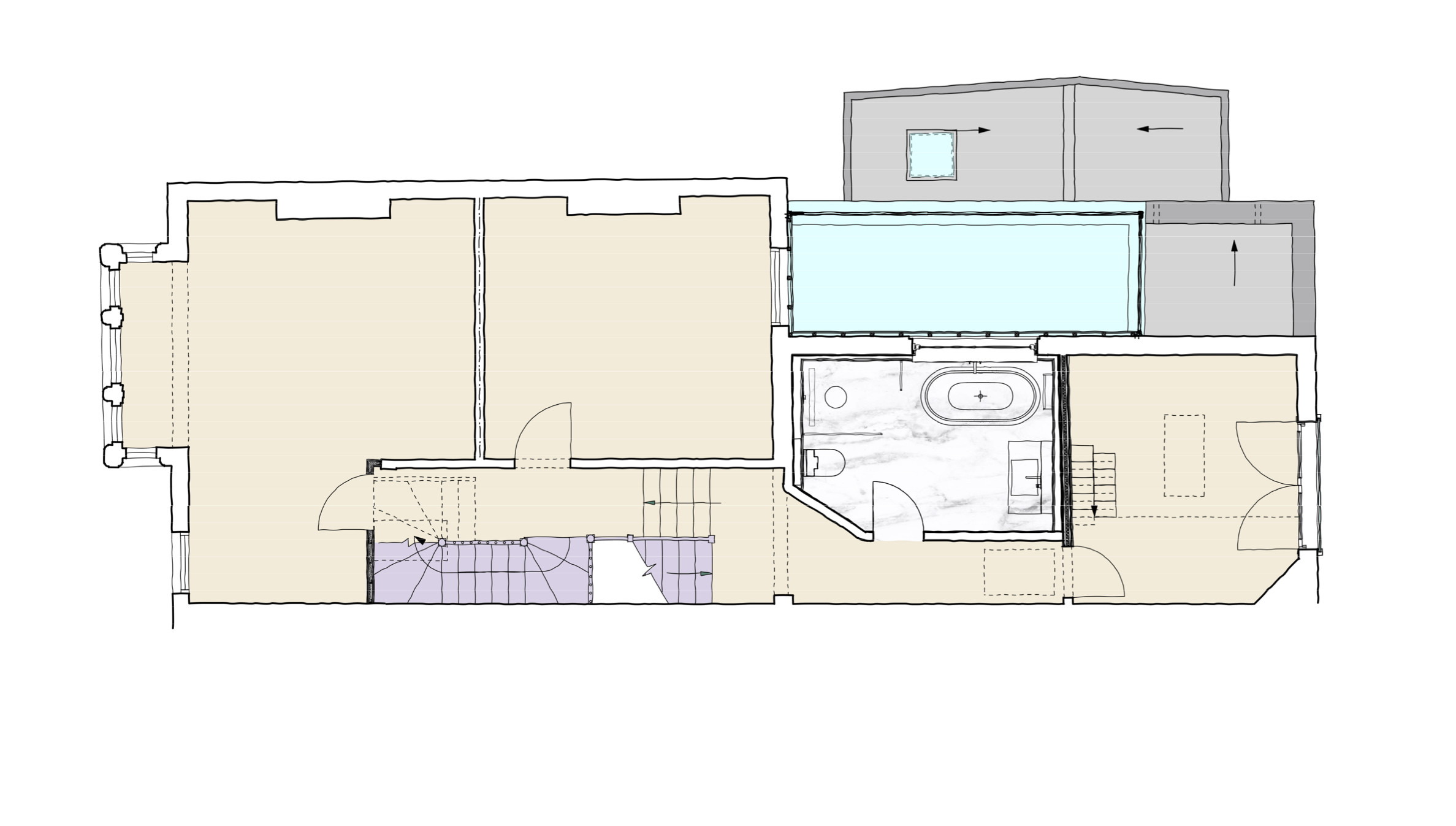 Our design proposals altered and extended the internal layout at ground floor level by partially infilling the gap to the side of the property and adding a glazed rear extension to improve outlook and access to the rear garden.